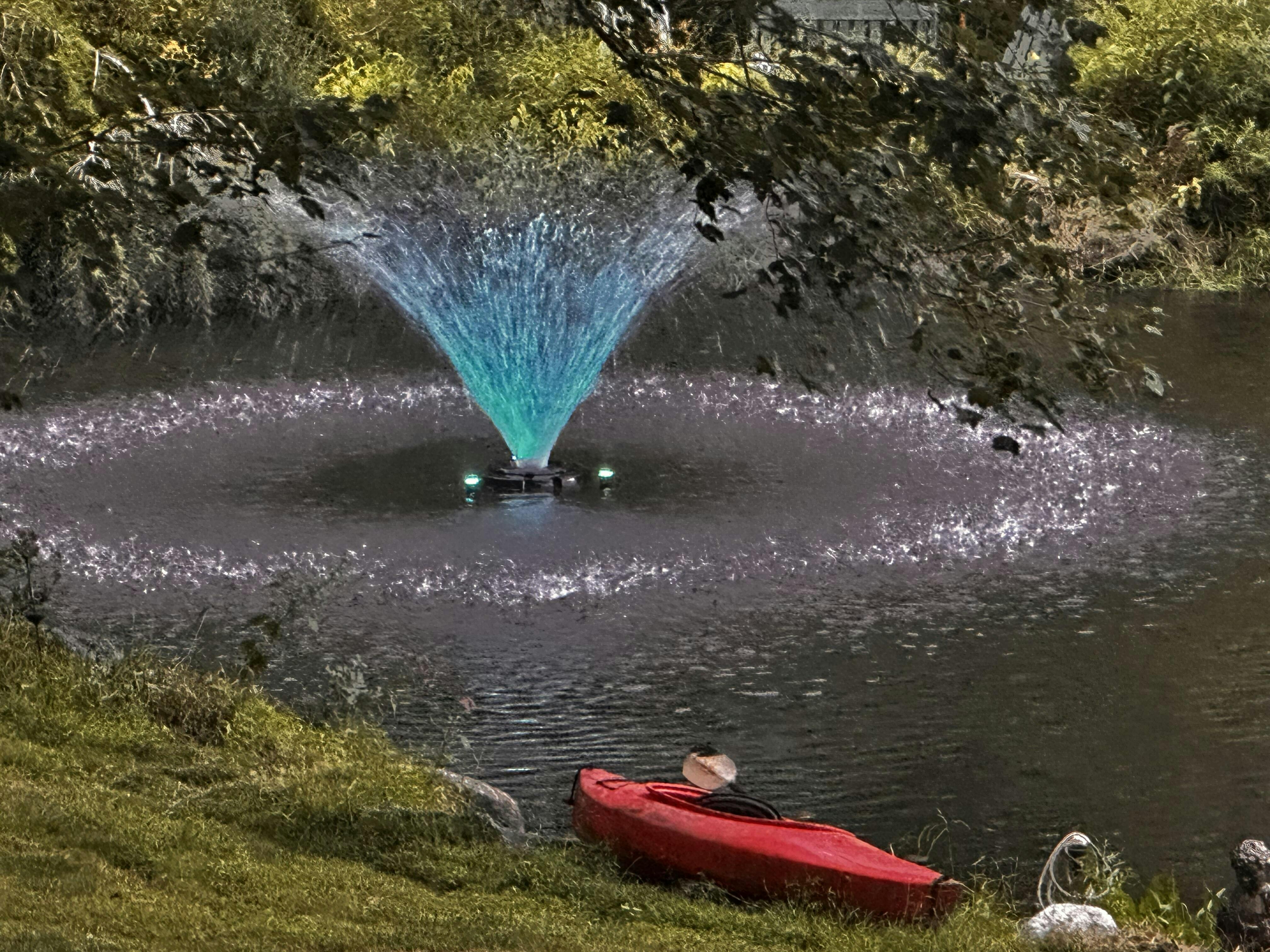 Pond aeration is the fundamental process from which all water management is derived.  If you increase the rate in which oxygen in the atmosphere enters the water column, you also increase the functionality and efficiency of your waterbodies ecosystem.   More oxygen = healthier pond!  A properly aerated waterbody can hold 3 times the fish, keep those fish healthy, and fight off nuisance algae blooms.  A well aerated system using the VFX series, decreases your maintenance burden all while producing a fantastic display.